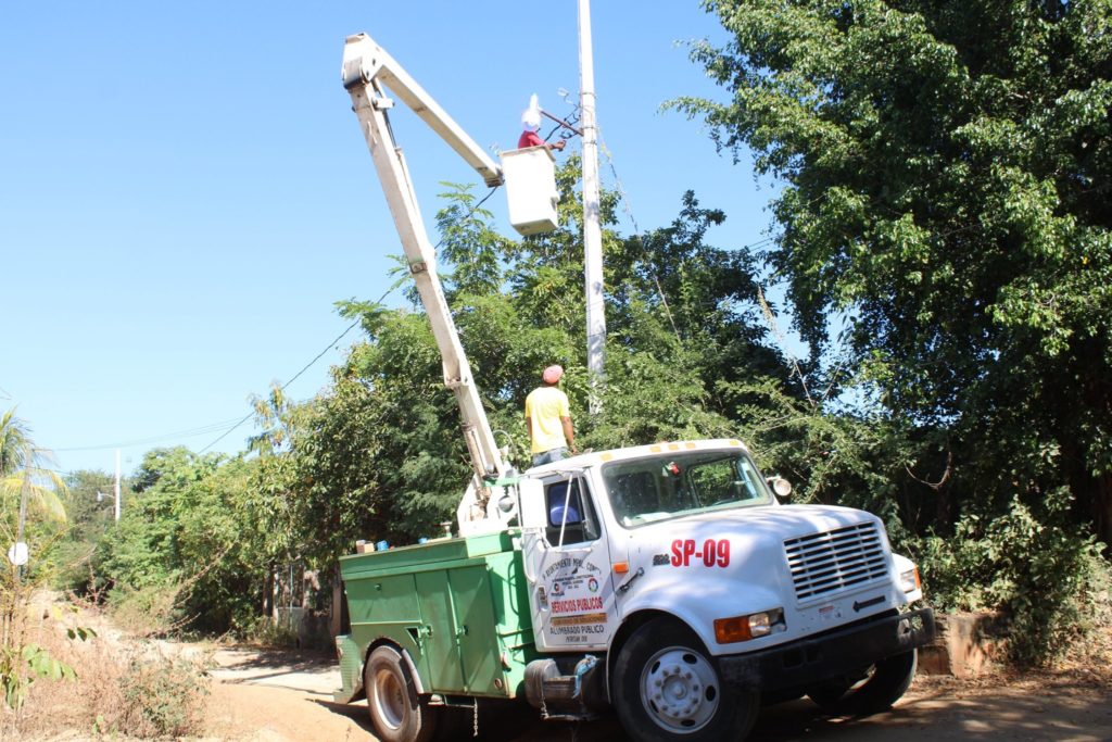 PETATLÁN, GRO.- El área de alumbrado público, trabaja día tras día, con el fin de mantener las calles y colonias alumbradas de Petatlán, esto de acuerdo a las indicaciones del Presidente Dr. Esteban Cárdenas Santana, que giró instrucciones para la instalación de luminarias al mismo tiempo que rehabilitan el alumbrado en las comunidades de la sierra.