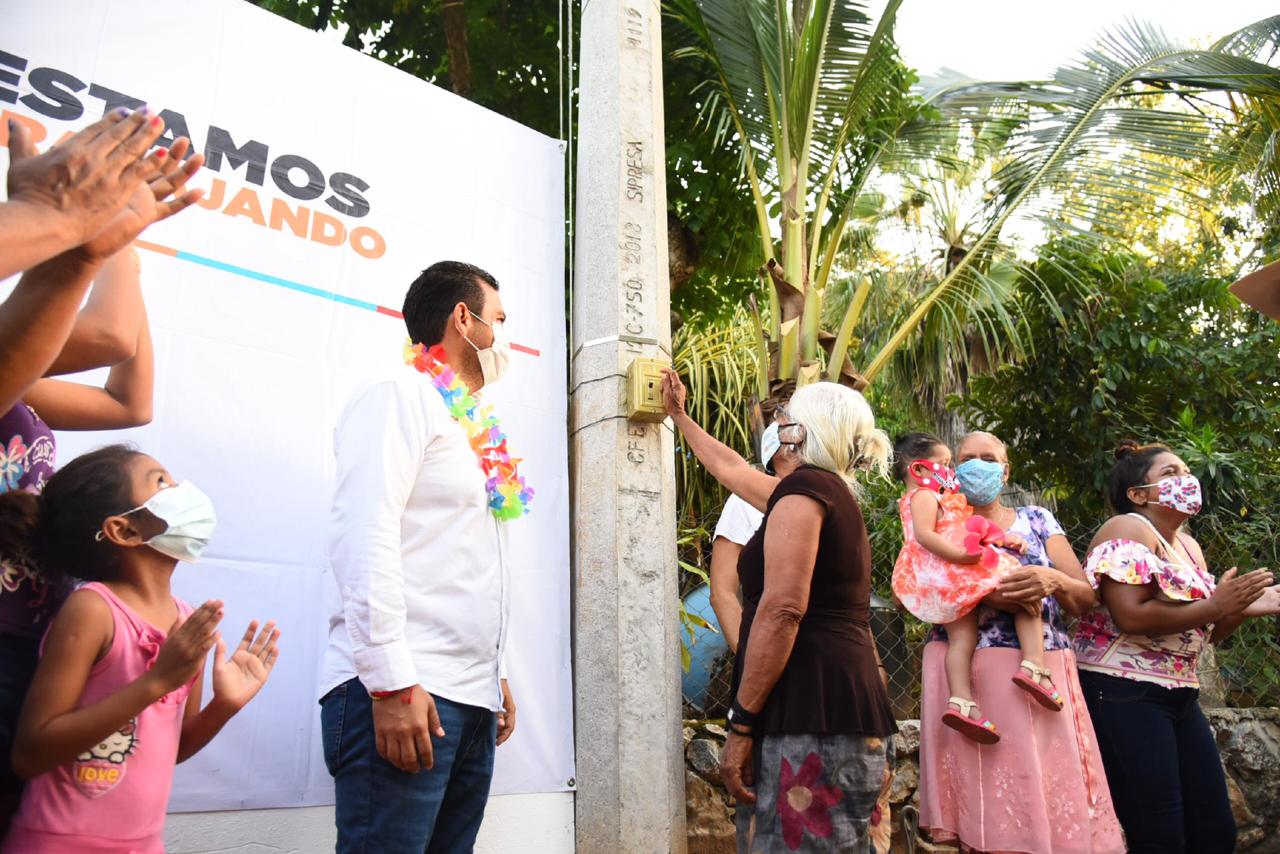 Llegando a cada rincón del municipio el presidente Jorge Sánchez Allec inauguró la Electrificación en calle Ciruelos y entrega de apoyo subsidiado Buena Vista en beneficio de cientos de familias que agradecieron al presidente Jorge Sánchez por “acordarse de ellos y llevarles beneficios; estábamos abandonados”, expresó Loreto Galindo Aguirre.