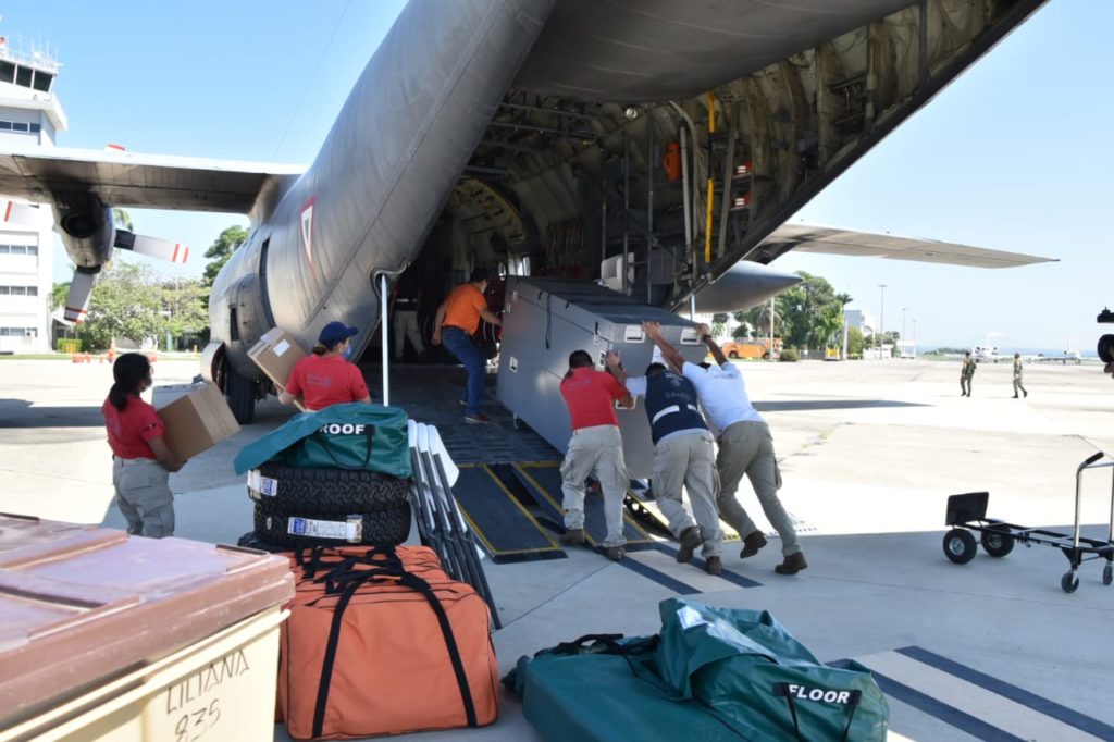 ACAPULCO, GRO., 01 de noviembre, 2020- La Fuerza Aérea del Ejército Mexicano, trasladó este domingo al estado de Chihuahua, el Hospital Móvil COVID-19, que con las estrategias médicas implementadas por el Gobernador Héctor Astudillo Flores y el apoyo del Gobierno Federal, logró que en los municipio de Zihuatanejo y Ometepec, donde operó ese hospital itinerante, se redujera la ocupación de camas COVID.