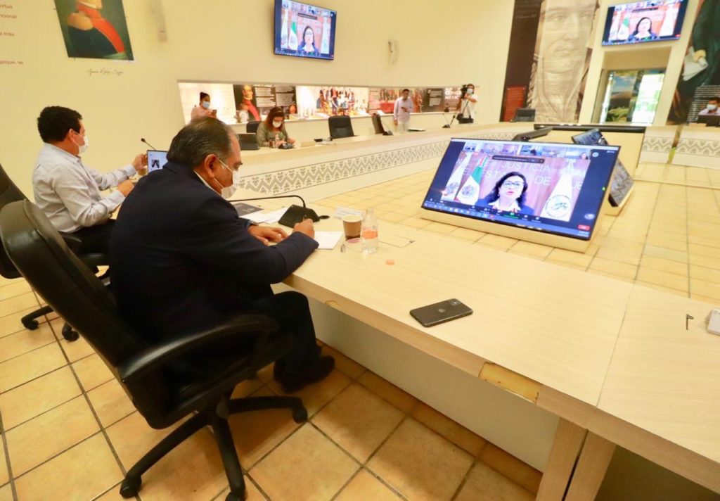 En este acto virtual también participaron la presidenta de la Mesa Directiva del Congreso local, Eunice Monzón García; el presidente del Tribunal Superior de Justicia, Alberto López Celis; integrantes del pleno de la Sala Superior, así como
