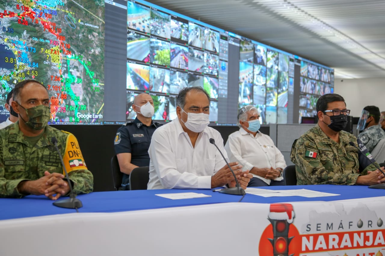 En compañía del secretario de Salud, Carlos de la Peña, el mandatario estatal pidió la colaboración de todos para cuidarse, usar el cubreboca y mantener la sana distancia, medidas que son sumamente importantes para evitar un contagio. Adelantó que el próximo domingo se darán a conocer una serie de acciones, que se van a realizar con motivo del arribo de visitantes durante la temporada vacacional de fin de año.