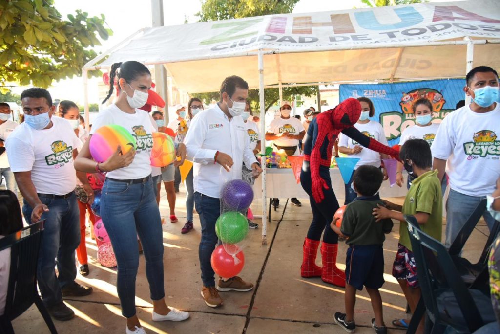 El presidente Jorge Sánchez y su esposa Lizette Tapia visitaron las colonias de Buena Vista y Pantla donde entregaron juguetes y la tradicional rosca de reyes a los pequeños. Los niños se llenaron de alegría y se fueron a sus casas con una sonrisa, porque una vez más fueron consentidos por la administración municipal de Zihuatanejo de Azueta.