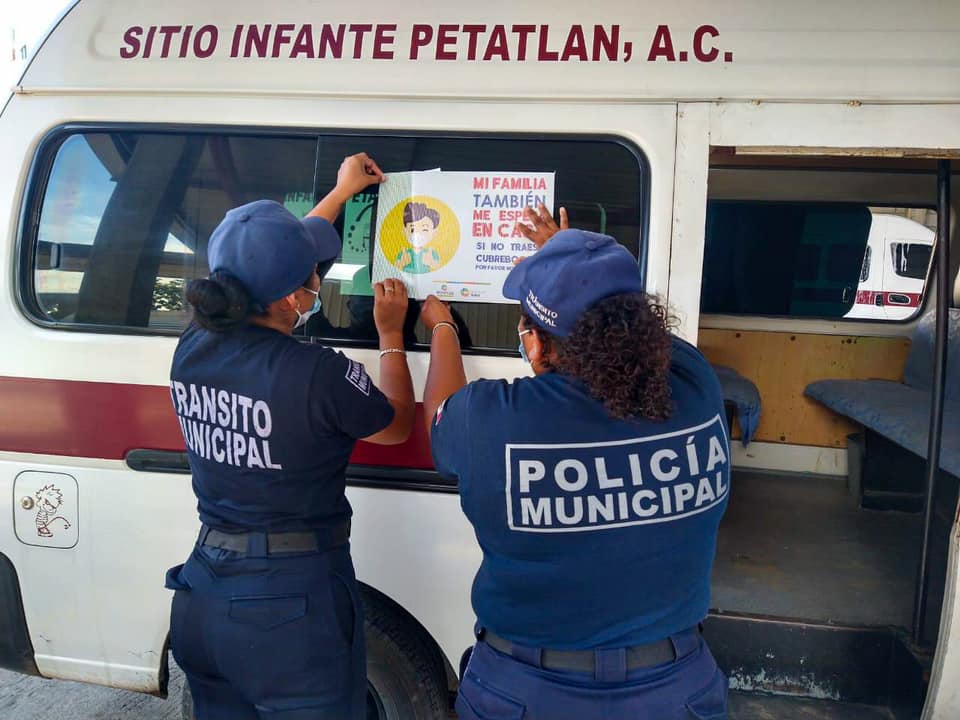 PETATLÁN,GRO.- El Gobierno de Municipal de Petatlán que encabeza el Dr. Esteban Cárdenas Santana en coordinación con las distintas organizaciones de transportistas del municipio, pusieron en marcha una campaña de concientización denominada, “MI FAMILIA TAMBIÉN ME ESPERA EN CASA”, donde se pide a toda la población, el uso del cubre bocas es obligatorio para poder usar el transporte público en el municipio.