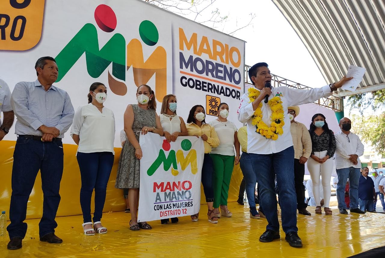 En su participación, el candidato de la coalición PRI-PRD, Mario Moreno Arcos, reconoció la importancia del apoyo de la población unionense, ante la cual externó que de llegar a la gubernatura, modernizará el campo con la adquisición de equipo como tractores. Destacó que la mujer juega un papel importante y tiene todo su respeto, por ello su gabinete estará compuesto de manera equitativa.