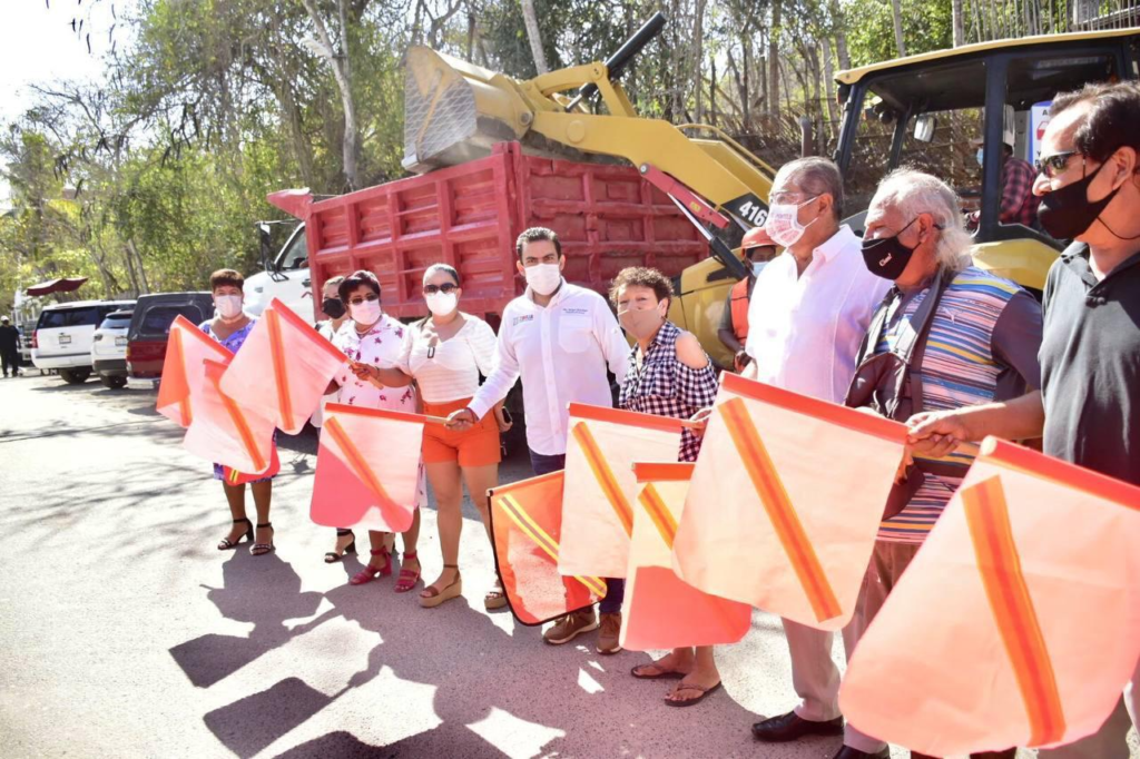 Presidente Jorge Sánchez Allec da banderazo de pavimentación con carpeta asfáltica playa La Ropa