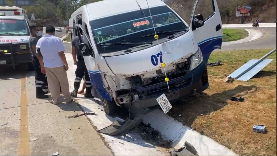 Zihuatanejo, Gro., 11 de Marzo.-Al menos tres personas con lesiones leves y cuantisos daños materiales, dejó como saldo un choque vehicular que se registró este día entre un coche particular modelo Optra, en donde viajaba una persona adulta mayor acompañada con niños, y una urvan del transporte público de Las Dos Costas con el número económico 07 de ruta La Unión-Zihuatanejo.
