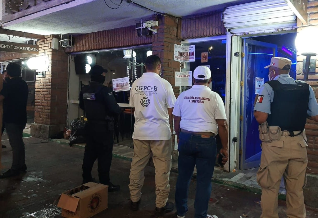 *Acapulco, Gro., 18 de abril de 2021.-* Este fin se semana fueron clausurados en Acapulco cinco establecimientos por desacatar las medidas sanitarias contra el COVID-19, no respetar el aforo permitido ni el horario para la venta de bebidas alcohólicas.