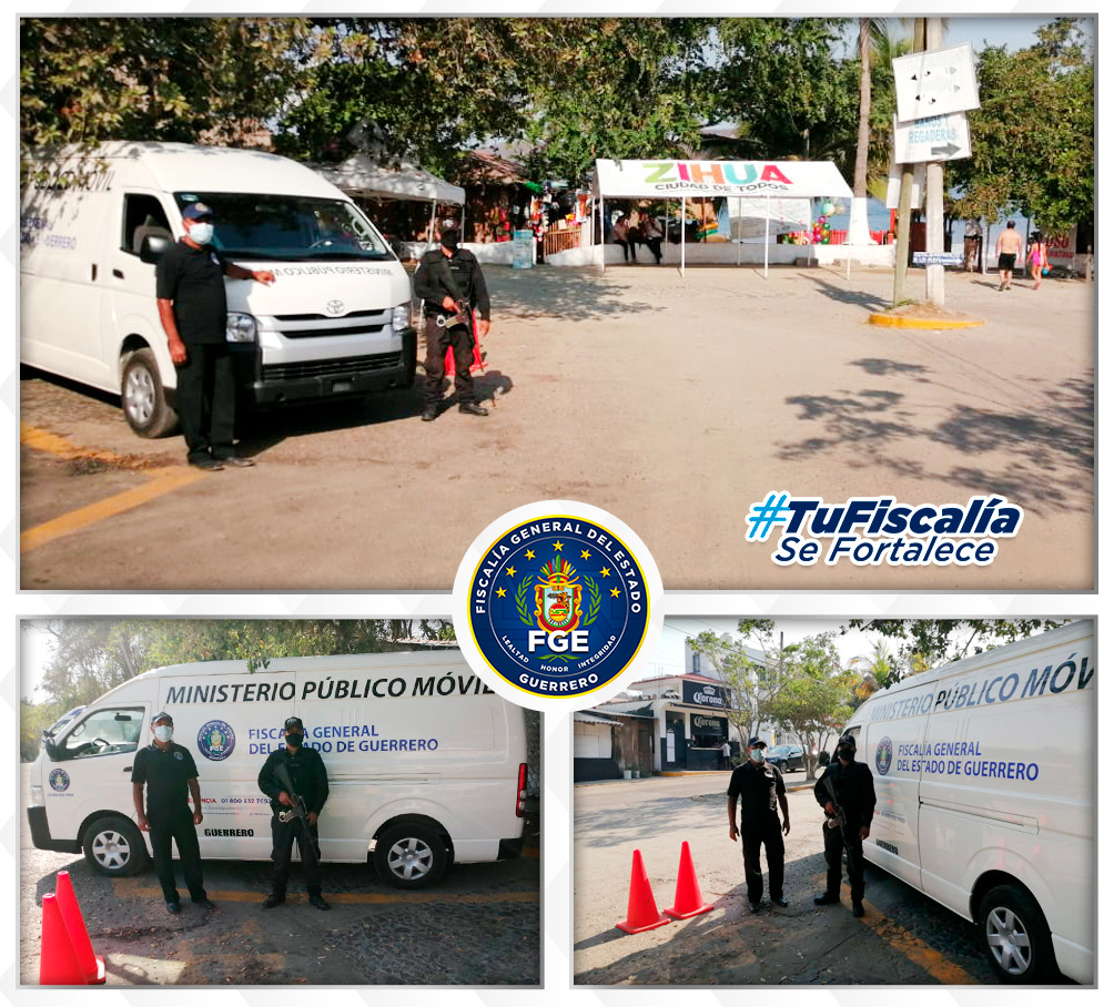 Por instrucción del Fiscal General del Estado, Jorge Zuriel de los Santos Barrila, este miércoles continúan los recorridos permanentes de los Ministerios Públicos Móviles en las inmediaciones de la zona turística de Ixtapa-Zihuatanejo, región Costa Grande, esto para atender de manera pronta e inmediata a turistas y residentes que requieran el apoyo en materia de procuración de justicia para realizar alguna denuncia u orientación en casa de ser víctimas de la comisión del algún delito durante su estancia en este destino de playa.