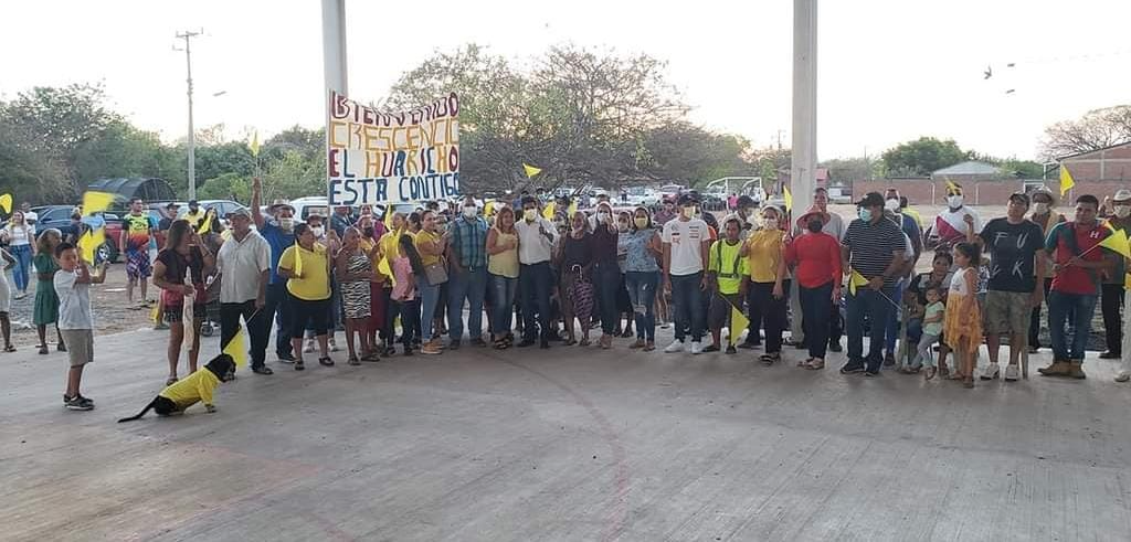 LA UNIÓN, GRO. A 21 DE MAYO DE 2021.- Habitantes de la comunidad de El Huaricho, respaldaron al candidato a la presidencia municipal por el Partido de la Revolución Democrática (PRD), Crescencio Reyes Torres, quien se comprometió a mejorar la infraestructura de todos los poblados, principalmente en temas de agua potable y drenaje sanitario.