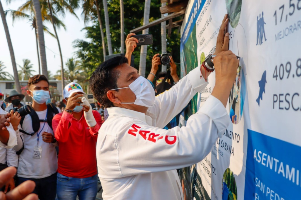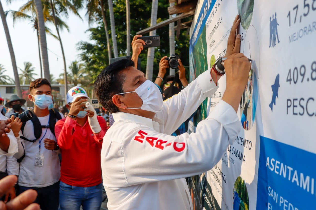 En este mismo encuentro en la localidad de San Pedro las Playas, también firmó cinco compromisos para el saneamiento de la Laguna de Tres Palos, que consiste en reforestación de especies nativas, campaña de preservación de la fauna, planta de tratamiento de aguas y sanear el Río La Sabana, así como un programa de control de basura generada y dragado de la laguna.
