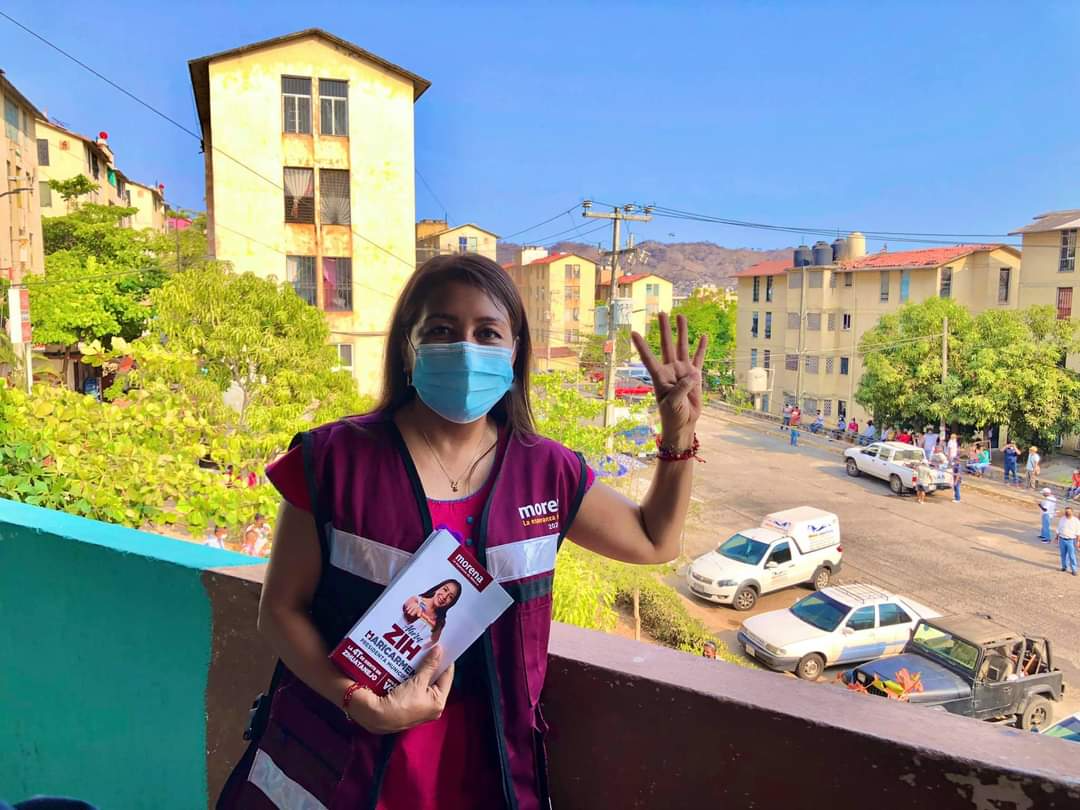 (Zihuatanejo, Gro, a 30 de abril de 2021).- La candidata de Morena a la presidencia municipal de Zihuatanejo, Maricarmen Cabrera Lagunas visitó la unidad habitacional, Infonavit El Hujal, para llevar casa por casa las propuestas de la cuarta transformación.
