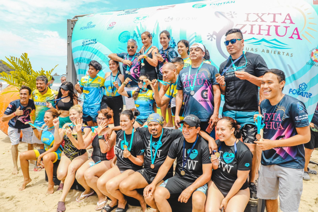 la primera edición “IXTA-ZIHUA Aguas Abiertas”, competencia de nado que atrajo a participantes de cinco estados de la república y que abre la temporada de eventos deportivos nacionales e internacionales con sede en este destino de playa.