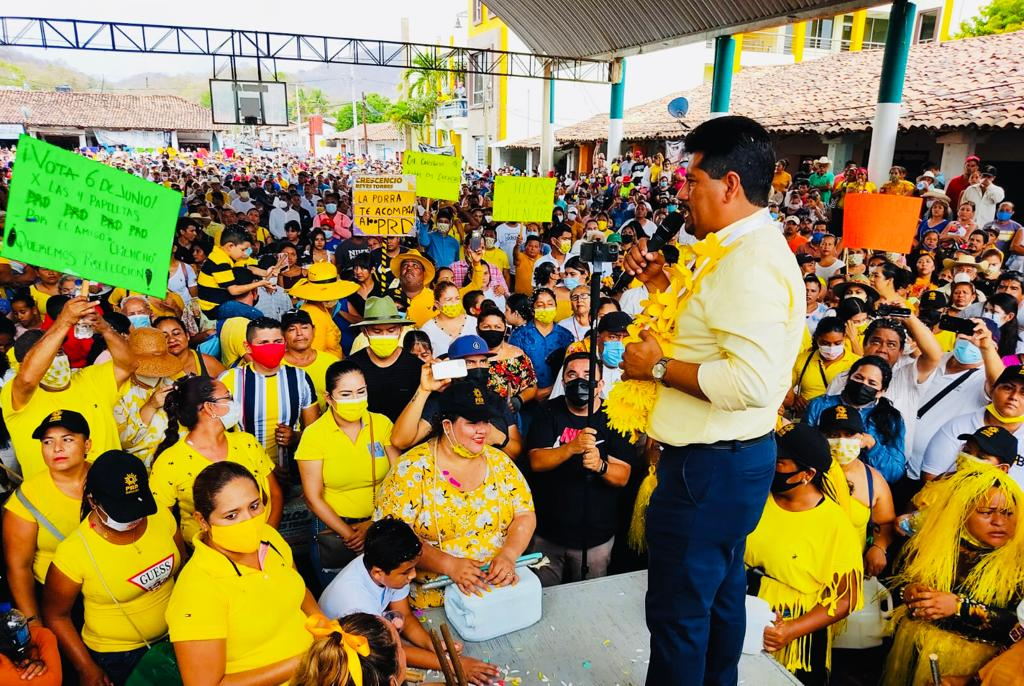 LA UNIÓN, GRO. A 01 DE JUNIO DE 2021.- Ante los habitantes de El Tibor y de Arroyo Grande, el candidato a la presidencia municipal por el PRD, Crescencio Reyes Torres, se comprometió a trabajar en favor de todos los unionenses para continuar con el desarrollo en los diferentes sectores productivos, principalmente en los rubros del campo y del turismo, dos de las actividades que más se desarrollan en La Unión.