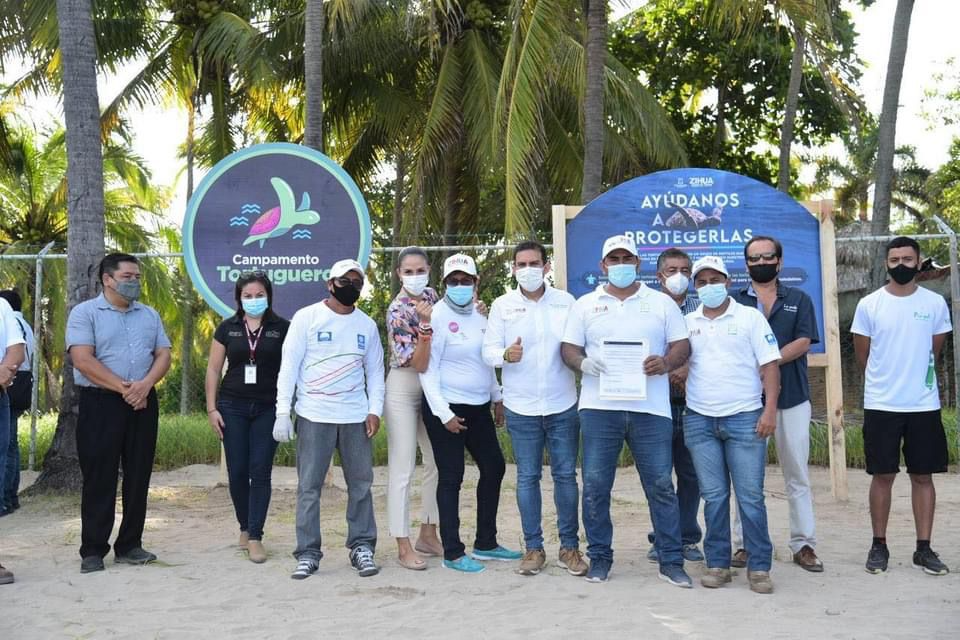 Zihuatanejo, Gro., 14 de Julio de 2021.- Al continuar cumpliendo compromisos del gobierno que encabeza con acciones que fortalecen el desarrollo del municipio en temas prioritarios como el medio ambiente, el presidente Jorge Sánchez Allec puso en operación este miércoles el Campamento Tortuguero “La Ropa”, ubicado en la playa del mismo nombre, cuyo manejo está a cargo de la Dirección de Medio Ambiente y Recursos Naturales.