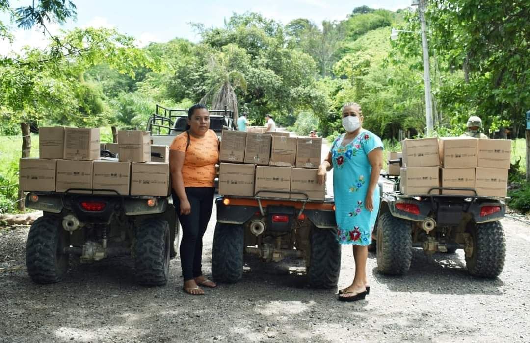 Dichos apoyos se los entregaron a los comisarios municipales de las localidades de Platanillo, Pitales, Los Pitos, Puerto de la Vela y Los Bancos, con el apoyo y resguardo de soldados de la Secretaría de la Defensa Nacional (Sedena).