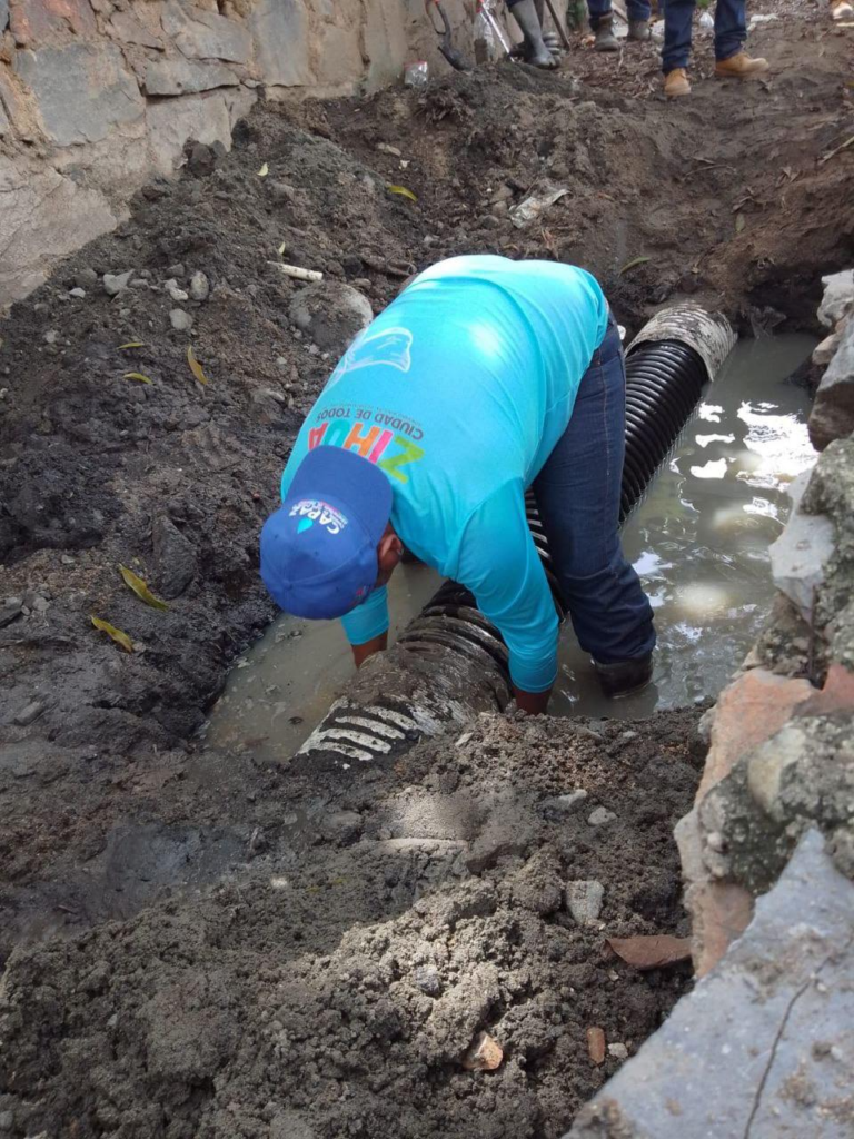 CAPAZ rehabilita colector sanitario dañado por lluvias en El Coacoyul