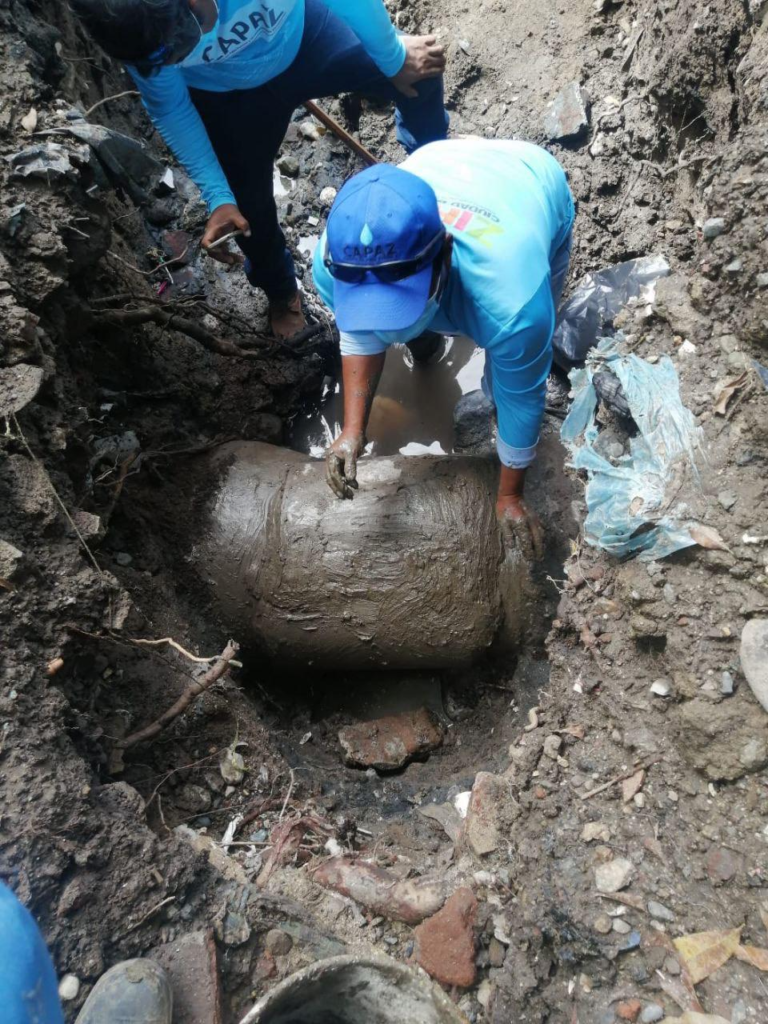 Gracias al trabajo coordinado de la CAPAZ con la Junta Local de dicha comunidad, los daños al contexto poblacional han sido mitigados y actualmente la red sanitaria se encuentra operando de manera normal y eficiente.