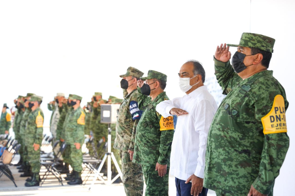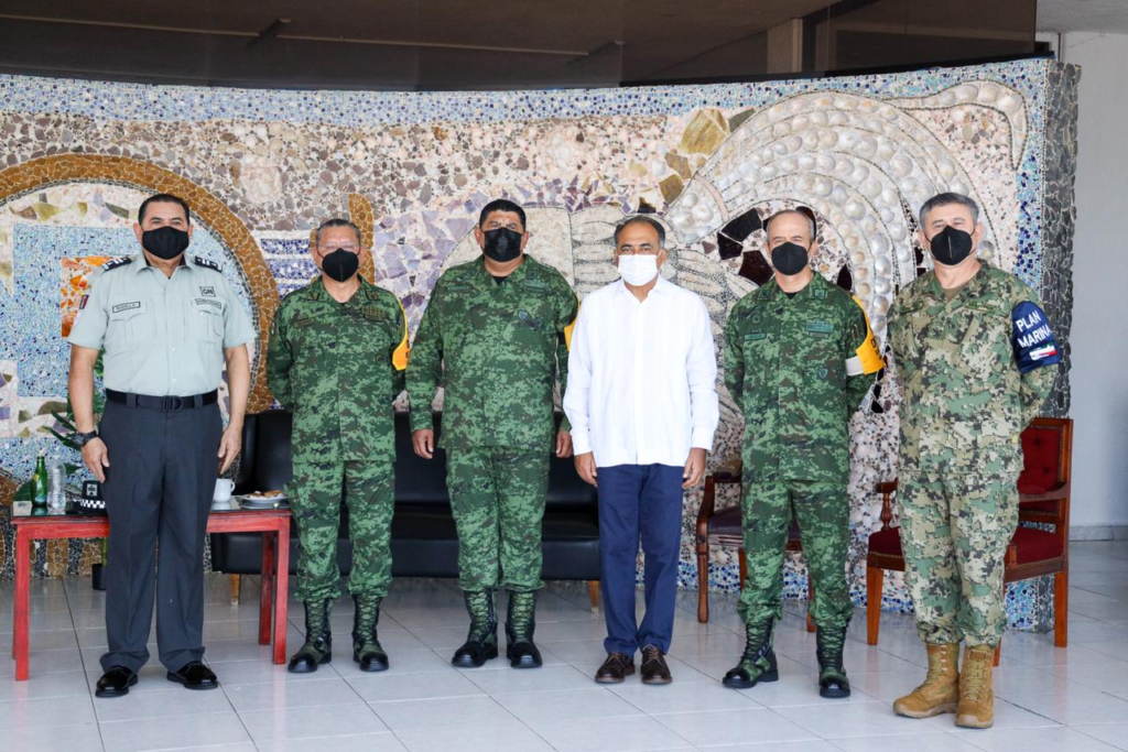Estuvieron presentes el secretario general de Gobierno, Florencio Salazar Adame; el comandante de la Octava Región Naval, Julio César Pescina Ávila; el comandante de la 35 zona Militar, Miguel Ángel Aguirre Lara; el Comandante de la 27 zona Militar, Federico San Juan Rosales, el representante de la Guardia Nacional, Paul Riviello, entre otros.