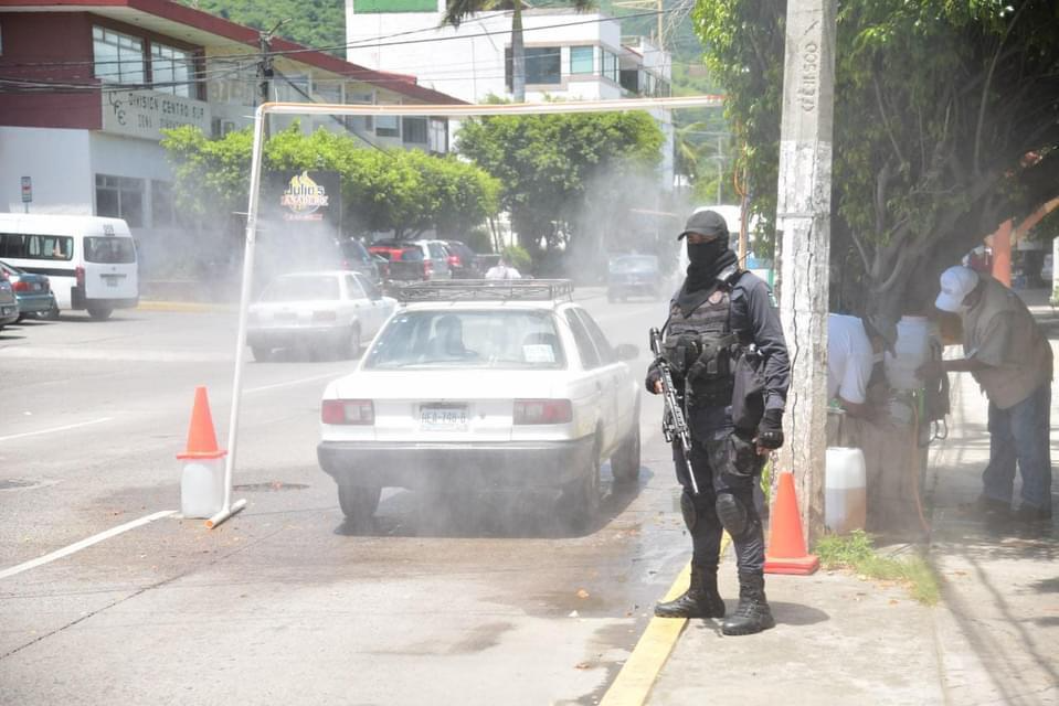 Gobierno de Zihuatanejo y Delegación de Transportes instalan arco sanitizante para vehículos COVID-19.