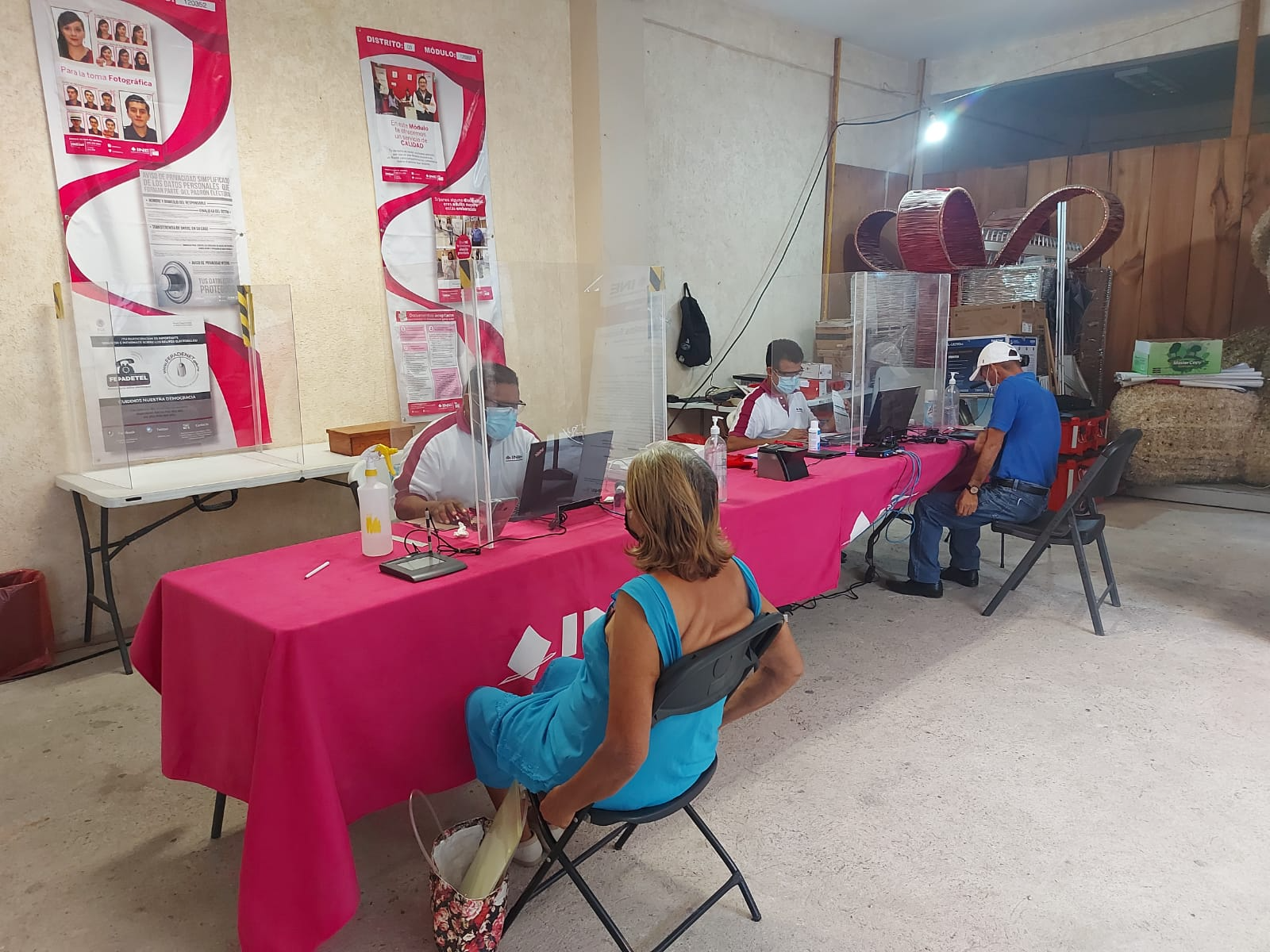Técpan de Galeana, Gro; 25 de agosto de 2021.-Tras haber cerrado las actividades la semana pasada porque habrían dado positivos algunos funcionarios a la Covid-19, a partir de este miércoles 25 de agosto reinició sus actividades el módulo del Instituto Nacional Electoral (INE) aquí en Técpan.