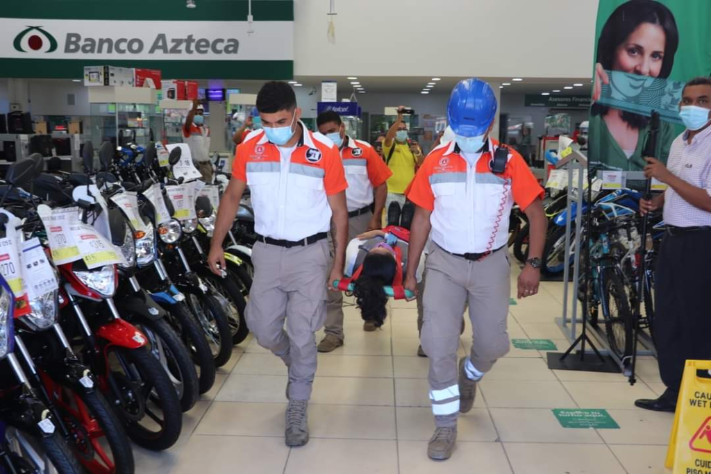 Lo anterior se realizó a las 11:30 horas de este día, en la tienda comercial Elektra de esta ciudad, con la hipótesis de un sismo de 7.2 grados con epicentro en las Ccostas de Guerrero, por lo que los empleados y personas presentes, tuvieron que salir de manera ordenada del edificio apoyados por personal de Protección Civil municipal hacia un lugar seguro para no poner en riesgo sus vidas.