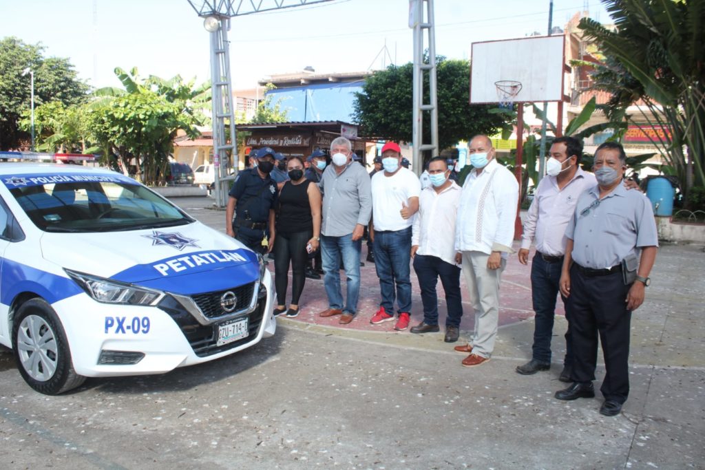 PETATLÁN, GRO.- La mañana de este lunes 20 de septiembre del 2021, el alcalde petatleco Dr. Esteban Cárdenas Santana, hizo la entrega de tres patrullas a la dirección de seguridad pública y tránsito municipal, donde estuvo la primera autoridad acompañado por la síndica María Elva Sierra Ramírez de su cuerpo de regidores y diferentes directores de comuna petatleca.