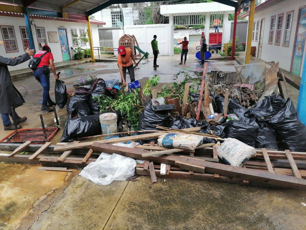 Padres de familia y maestros realizan limpieza en instituciones educativas; Servicios Públicos ayuda con el retiro de desechos.
