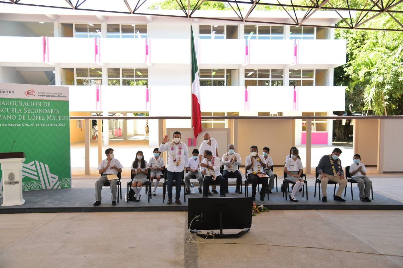 Asimismo, el alcalde Jorge Sánchez Allec reconoció el esfuerzo del gobierno de Héctor Astudillo Flores para dotar de un nuevo y funcional edificio a la primera escuela secundaria construida en Zihuatanejo, cuyo director es Raymundo Arroyo Mendiola, de donde han egresado hombres y mujeres que hoy le sirven al municipio y al estado de Guerrero, entre ellos Alejandro Bravo Abarca.