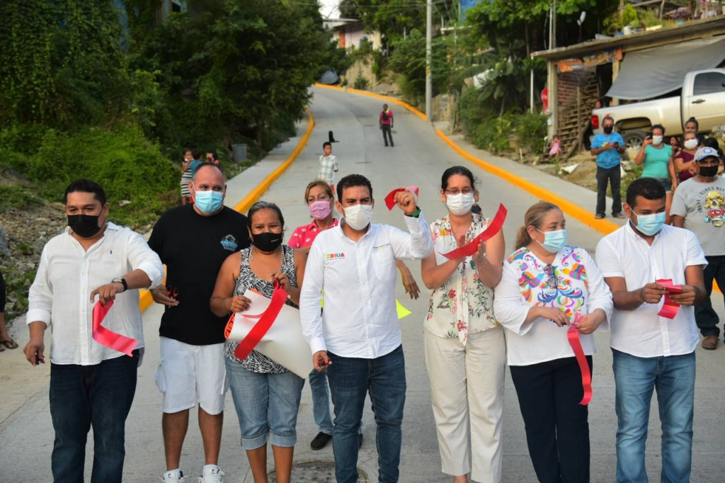 El presidente Jorge Sánchez Allec inauguró la pavimentación de la calle principal de la colonia Ampliación La Joya, obra integral, pues además de ser una de las más grandes en extensión, también incluye nueva red de electrificación y de drenaje, todas realizadas a través del programa Estamos Trabajando, con el cual hoy Zihuatanejo tiene otras condiciones de vida en colonias y comunidades.