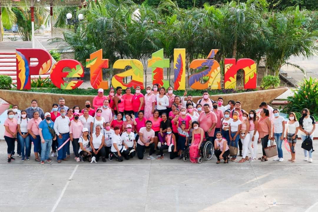 Petatlán, Gro; 19 de octubre de 2021.-Con el fin de concientizar y promover la detección temprana del cáncer de mama, este martes por la tarde, personal del DIF municipal,
