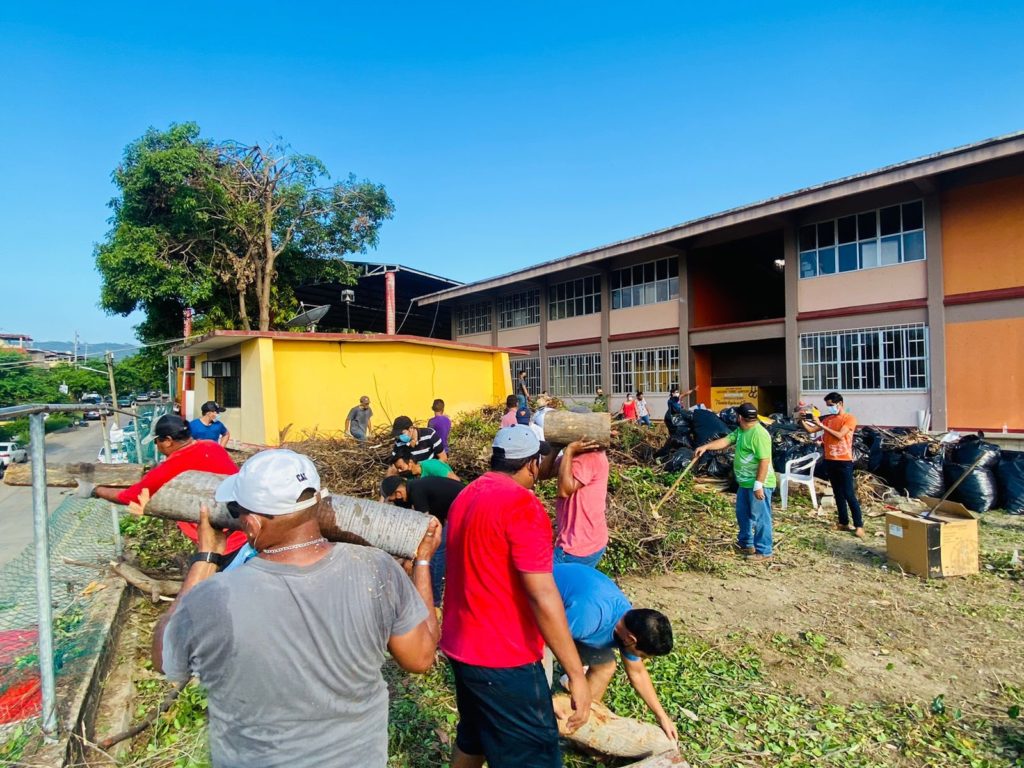 Detalló que dentro de las actividades implementadas se realizó el retiro de ramas, troncos, maleza, cacharros como bancas, mesas, libros y basura en general que la mayor parte era de árboles, ya que de momento las escuelas permanecen cerradas a causa del COVID-19.