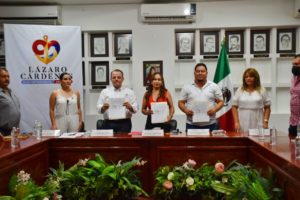 Cd. Lázaro Cárdenas, Michoacán a 21 de Junio del 2022.- Con la finalidad de dar certeza y transparencia a los ciudadanos, en cuanto a las gestiones, trámites y servicios, que realizan en dependencias del municipio; este martes integrantes del Consejo Municipal de Mejora Regulatoria, encabezados por la Presidente Q.F.B. María Itzé Camacho Zapiain, firmaron un convenio de Coordinación para la Implementación de Mejora Regulatoria, con la Secretaria de Desarrollo Económico del Estado.