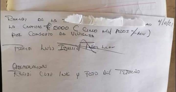 «La ciudadanía está decepcionada por este servidor público, ya que se le entregaron 5 mil pesos para unas viviendas que otorgaba el gobierno federal de medidas 5 X 5 metros y hasta la fecha no hay respuesta».