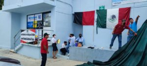 Tecpan de Galeana, Gro; 21 de julio de 2022.-Como parte del movimiento de huelga que estalló a nivel nacional justo al mediodía de este jueves, los telefonistas sindicalizados de esta región, procedieron a colocar las banderas rojinegras en el exterior de sus centros de trabajo, mismos que de esta manera han quedado paralizados por tiempo indefinido.