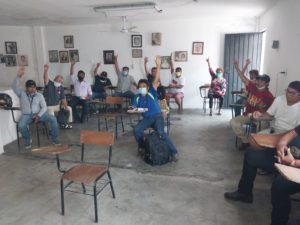 Acapulco, Gro; 23 de julio de 2022.- Como parte de la reestructuración en la Delegación XXV del Sindicato Nacional de Redactores de la Prensa (SNRP), al retomar Ernesto Caballero Zamora la dirigencia de la organización periodística, luego de haber cumplido su licencia por enfermedad, la asamblea de esta organización periodística escogió a sus nuevos representantes ante el Fondo de Apoyo a Periodistas (FAP) en el estado de Guerrero.