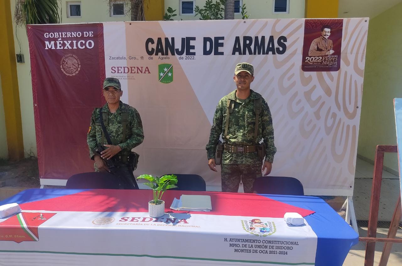 El canje comenzó el pasado 17 de agosto en la plaza de la cabecera municipal después de una ceremonia realizada en ese mismo lugar, contando con la presencia del capitán segundo del Cuarto Grupo de Morteros de Calibre 81 milímetros, Martín Estrada Román; el secretario del Ayuntamiento, Enrique Villanueva Vargas; la síndico procurador, Nubia Rodríguez Guido y el director de Seguridad Pública Municipal, Antonio Rendón Campos.