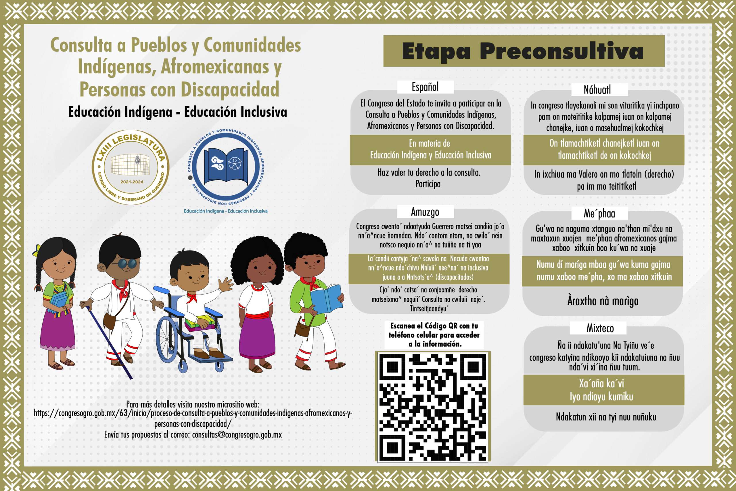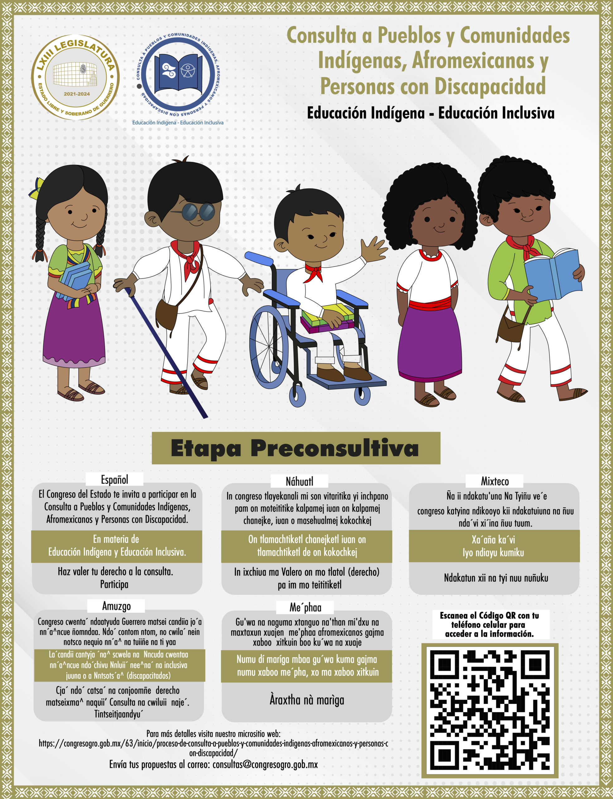 El Congreso del Estado invita a participar a los pueblos y comunidades indígenas, afromexicanos y personas con discapacidad en la Consulta en materia educativa.