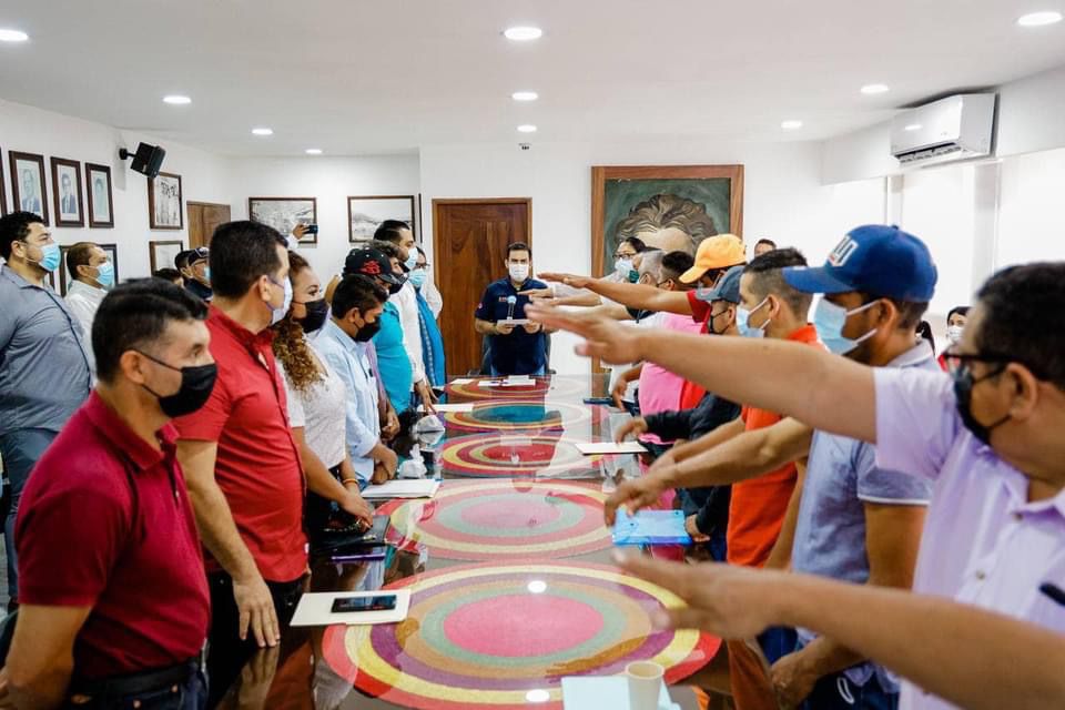 El presidente Jorge Sánchez Allec, acompañado del secretario del Ayuntamiento, Juan Manuel Juárez Meza; el regidor de Hacienda, Amando Vargas Herrera y el director de Gobernación, Leonardo Daniel Robles Palacios, les tomó la protesta a los comisarios municipales que durante el periodo 2022-2023 trabajarán como enlaces del gobierno de Zihuatanejo de Azueta en sus respectivas comunidades.