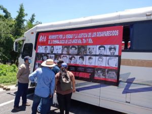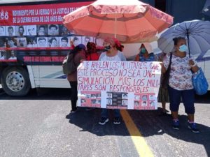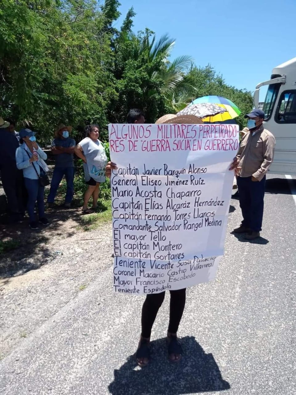 Atoyac de Álvarez, Gro; 08 de agosto de 2022.- «Algunos militares perpetradores de la guerra sucia en Guerrero: Capitán Javier Barquin Alonso, General Eliseo Jiménez Ruíz, Mario Arturo Acosta Chaparro», son algunos de los nombres que hoy lunes sacaron a relucir integrantes del comité de familiares afectados por la guerra sucia de los años 70 y 80 en esta región del estado, personas que este día llevaron a cabo un bloqueo a la carretera federal Acapulco-Zihuatanejo para exigir «justicia y reparación del daño».