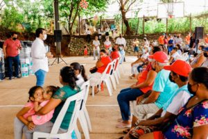 Lizette Tapia Castro, presidente honoraria del DIF Zihuatanejo, dijo que es la sexta ocasión que se entrega este tipo de apoyos en Buenavista, subrayando que para su esposo, el presidente Jorge