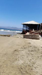 PETATLÁN.- Dos restaurantes de Barra de Potosí, en el municipio de petatlan, construyeron sobre la franja de arena, prácticamente las olas revientan en sus cimientos de piedras, situación que ha provocado la molestia de los turistas que llegan al lugar para disfrutar de la playa de referencia.
