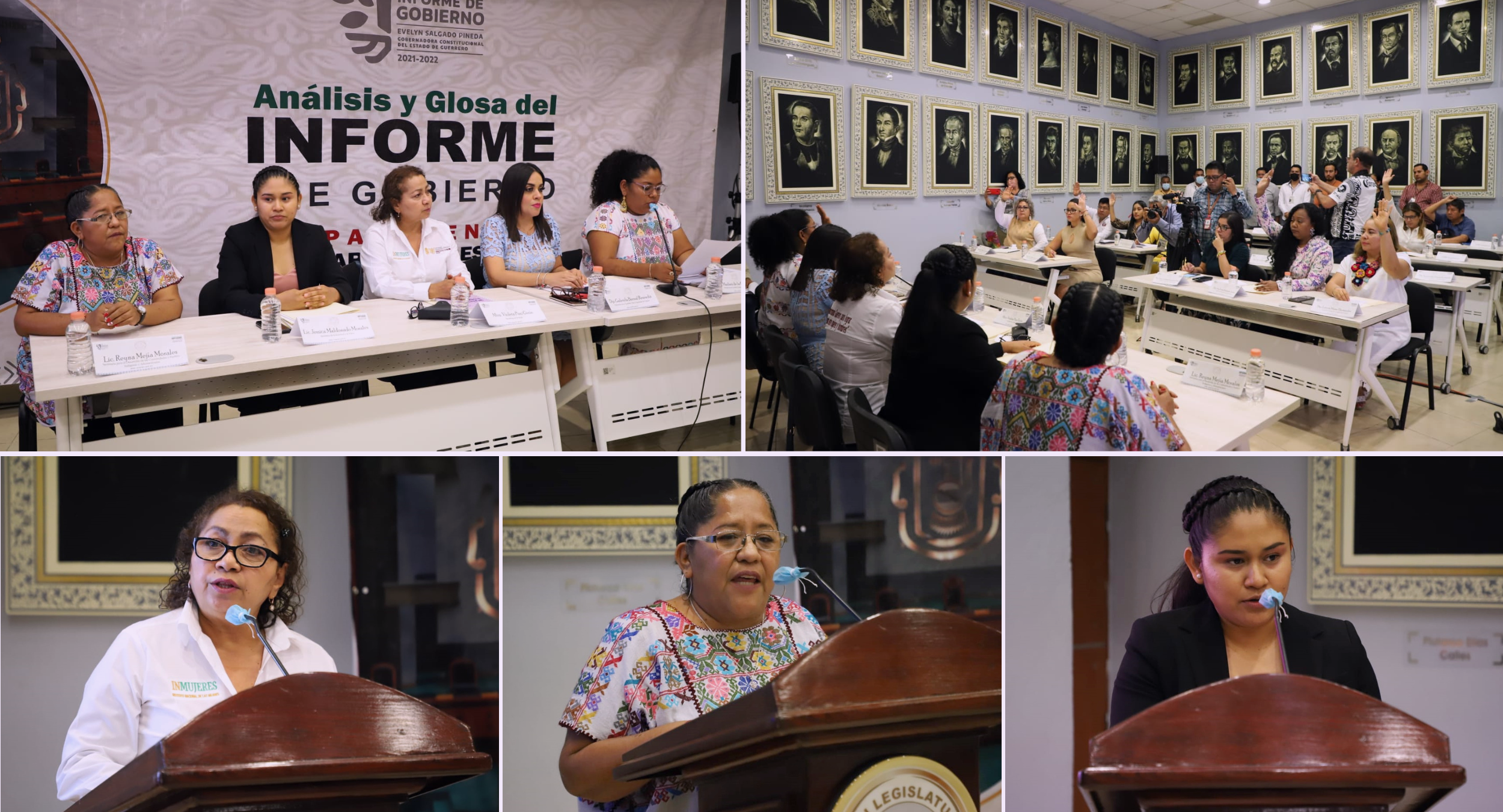 Las titulares de las Secretarías de la Mujer (Semujer), Violeta Pino Girón; de la Juventud y la Niñez (Sejuve), Jessica Maldonado Morales, y de Asuntos Indígenas y Comunidades Afromexicanas (SAIA), Reina Mejía Morales, realizaron su respectiva comparecencia ante las comisiones Para la lgualdadde Género, de la Juventud y el Deporte, y de Asuntos lndígenas y Afromexicanos, para continuar el Análisis y Glosa del Primer Informe de Gobierno.
