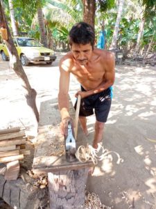 Pide el apoyo de la ciudadanía primeramente, para sacar adelante a su familia: «es bueno el trabajo que hago, ya que le damos un buen uso» al material que no es utilizado en los cultivos del cocotero, como son las palapas de las palmeras.