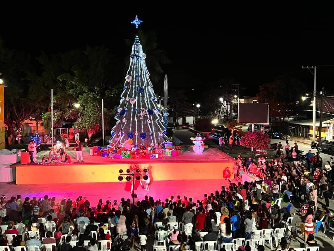 La Unión de Isidoro Montes de Oca, Gro., a 08 de diciembre de 2022.- La presidenta honoraria del DIF Municipal, Rebeca Núñez de Reyes, encabezó la ceremonia de encendido del árbol navideño colocado en la explanada de la cabecera municipal.