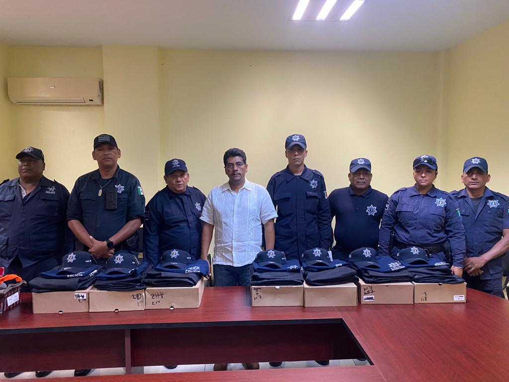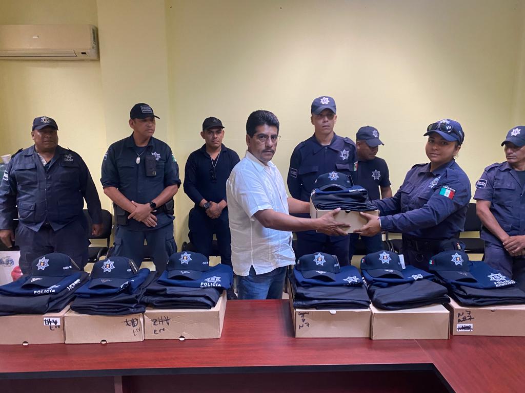 Presidente Crescencio Reyes entrega uniformes a personal de Seguridad Pública, Tránsito y Protección Civil