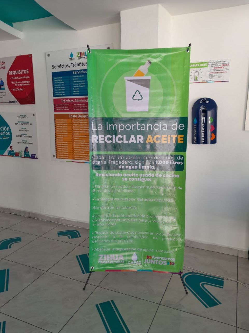 Como parte de las actividades encaminadas a sensibilizar a la población sobre la cultura del reciclaje y en el marco del Día Internacional de la Educación Ambiental, la Comisión de Agua Potable y Alcantarillado de Zihuatanejo (CAPAZ) puso en operación en sus oficinas centrales un centro de acopio de aceite doméstico, que se suma al de pilas ya existente.