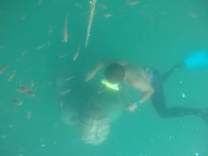 organizaron con los buzos y snorkelistas para realizar los trabajos mencionados, situación que adelantaron seguir realizando mientras se le da un mantenimiento a fondo a la escultura