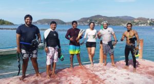 Zihuatanejo, Gro., 22 enero 2023.- Derivado del estado de abandono y a la falta de mantenimiento que no se le había proporcionado desde hace tiempo, el Cristo “Rey de Reyes” sumergido en el mar frente a Playa “Las Gatas”, recibió trabajos de limpieza en toda su estructura por parte de buzos y prestadores de servicios turísticos de la zona.
