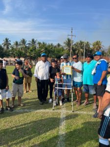 Zihuatanejo, Gro., 29 marzo 2023.- La Liga Municipal de fútbol Premiere de Zihuatanejo, encabezada por Víctor Medrano como presidente, realizó un emotivo reconocimiento por la trayectoria futbolística de más de 45 años de Enrique Torres, mejor conocido como «Outes».