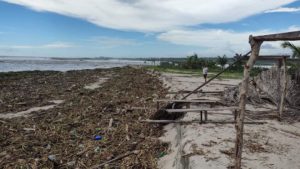 Tecpan de Galeana, Gro; 12 de octubre de 2023.-Prestadores de servicios turísticos y habitantes de la comunidad de playa Boca Chica, no han recibido ayuda por parte de los tres órdenes de gobierno, y al respecto la delegada municipal Olivia Suastegui de la Cruz, acusó qué 6 enramadas han desaparecido y quince más están a punto de venirse a bajo, tras el paso del huracán Max.